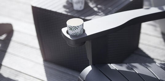 - Built for comfort with wide deep seating, 160kg load capacity and built in cup holder
