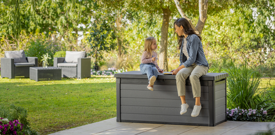 Die Cortina Kissenbox mit einem Fassungsvermögen von 757L ist perfekt, um einen geräumigen und aufgeräumten Garten zu schaffen. Die doppelwandigen EvotechTM-Paneele verleihen dieser Keterbox zusätzliche Stabilität und Robustheit, wodurch sie perfekt für Familien- und Gebrauchszwecke geeignet ist. Der extrem langlebige Kunststoff ohne Dellenbildung und die UV-Beschichtung machen die Cortina wetterfest, bereit, jahrelang Regen und Sonne ohne Wartung zu überstehen. Mit einer schönen holzähnlichen Textur und einem zweifarbigen Design fügt sich die Cortina harmonisch in jede Umgebung im Freien ein. Ein überstehender Deckel und ein praktisches Gasdruckfedersystem halten Wasser fern und bieten gleichzeitig einfachen Zugang von oben zu 757L Platz. Ideal zur Aufbewahrung von Gartenkissen, Sportgeräten sowie großen Werkzeugen, die sicher verstaut werden können.