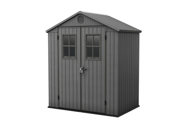 Starkes, haltbares und attraktives Gerätehaus. Aus unserem exklusiven Evotech-Material hergestellt, bietet dieses Gerätehaus das Aussehen und die Haptik von Holz, ohne dass Du es pflegen musst – es wird niemals verrotten, abblättern, rissig werden oder verblassen. Du wirst erstaunt sein über die vielen Funktionen, die wir in ein Gerät eingebaut haben, das so schnell aufgebaut werden kann. Die doppelwandige Nut-und-Feder-Konstruktion sorgt für Stabilität, Lüftungsöffnungen für die Luftzirkulation, ein Dachfenster und Fenster für die Innenbeleuchtung, Doppeltüren für einen einfachen Zugang zu den Dingen, die Du lagern möchtest, und das alles in einem Schuppen, in dem Deine Werkzeuge und andere Dinge sicher und geschützt sind.