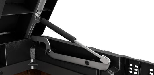 - Easy opening with hydraulic pistons. Includes a bin opening kit and brackets for shelf support (shelf not included)