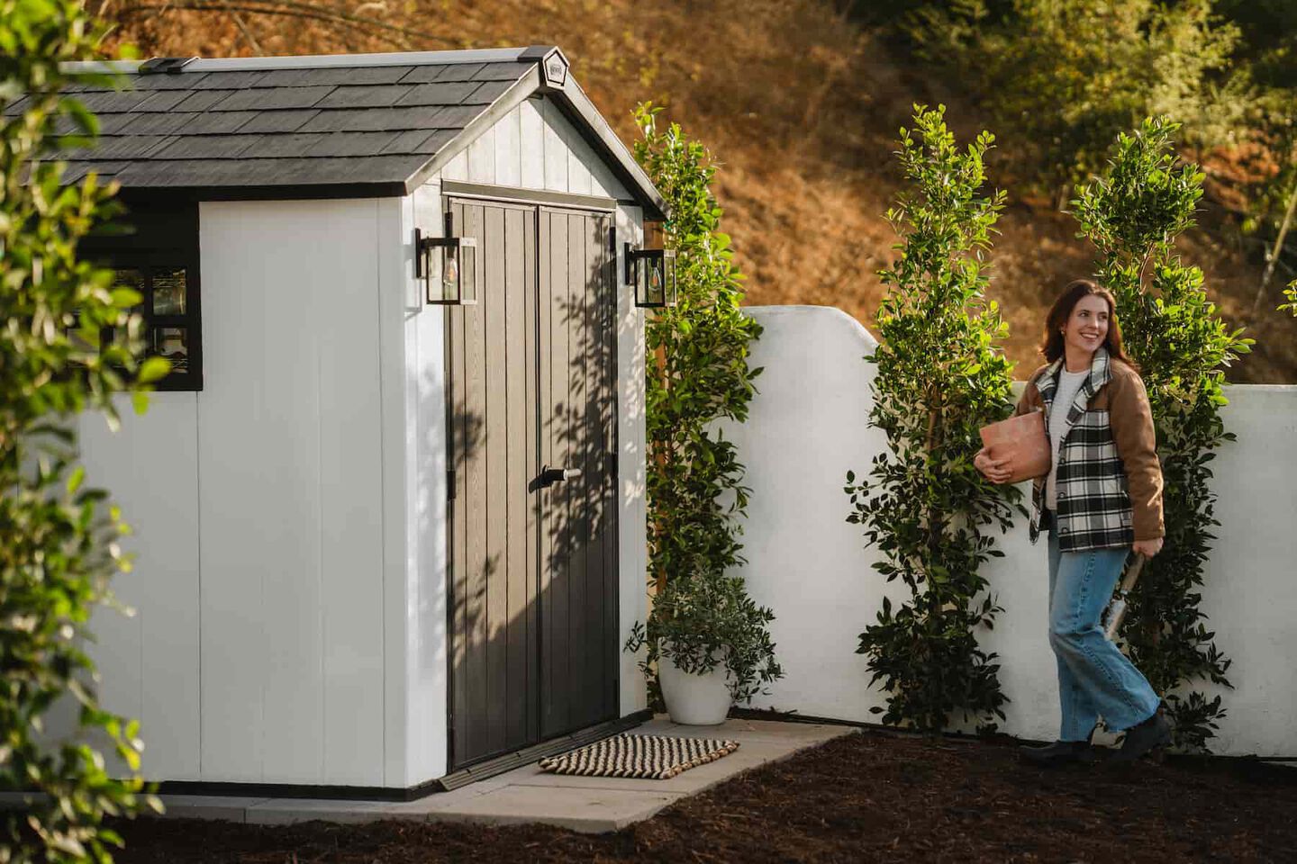 We would recommend a resin storage shed kit from our collection. All of them are weather-resistant, steel steel-reinforced, and have a number of other impressive features. We have shed kits in small, medium, and large sizes–but we think the large sheds, like our Oakland 11x7.5 shed, would make better DIY she sheds. The Oakland shed, in particular, is totally customizable. You can paint it and drill into it to make it completely your own.
