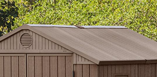 If you’re in the market for a backyard storage shed that has a wood-like appearance while also being weather resistant, the Darwin 6x8 storage shed is the shed you need. The brand new deep brown shade gives a natural, outdoor-inspired look. It comes in a shed kit that boasts easy assembly and it’s also heavy-duty. The shed itself is made from a durable resin, is double-walled and wind resistant up to 65 mph as well as steel-reinforced. So, it’ll stand up to whatever Mother Nature throws at it. The Darwin outdoor shed also offers built-in ventilation as well as an included shed floor. The spacious double doors offer ample room to move larger items like tools, lawnmowers and even outdoor furniture in and out with ease. The latch gives you a space to put a padlock on the shed, as well. With its peaked roof, windows, skylight and wood-like look, this shed will complement your yard.
