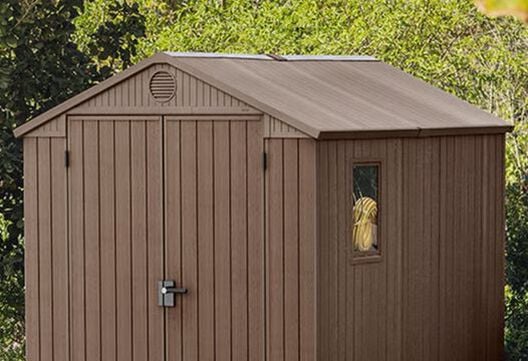 • Heavy-duty shed construction: Sturdy resin construction paired with being double-walled and steel-reinforced, makes this shed extremely durable.
