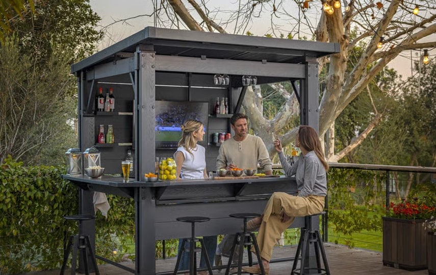 Después de la cena, seguro que el plan previsto es cambiar de ritmo, pero sin cambiar de emplazamiento. De forma que necesitarás otro tipo de aliados, como una barra de bar exterior con la que improvisar una zona de cócteles o postres en segundos. Las mesas nevera, por su parte, tendrán la importante misión de mantener las bebidas frías sin ocupar espacio. Y para todos aquellos que dan por hecho que la sobremesa será bastante larga, nuestras sillas Adirondack son perfectas para poner la guinda a ese ambiente más relajado: respaldo bajo, postura cómoda y estética inconfundible.