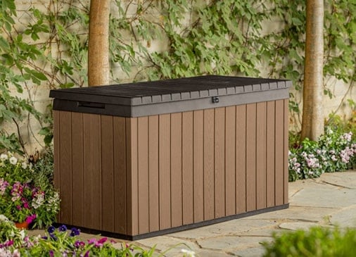 Descubre la gama de arcones de Keter diseñados para que parezcan de madera, se sientan como la madera, pero no necesiten nada de lo que exige el mantenimiento de la madera natural. Es la magia de fabricarlos con resina, material que no debes barnizar ni lijar año tras año.
